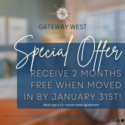 Receive up to two months free when moved in by January 31st at Gateway West!